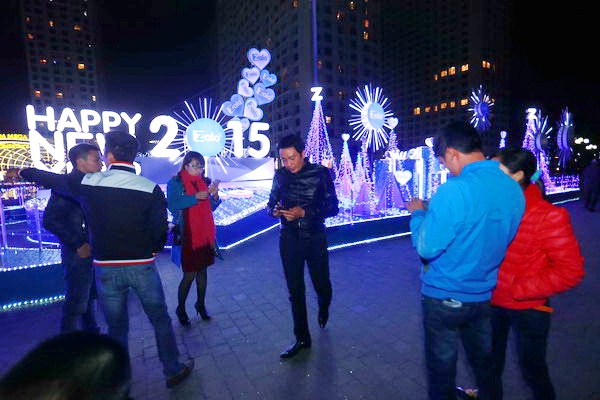 Khu Times City và Royal City là địa điểm chụp ảnh quanh năm suốt tháng chứ không riêng gì Tết. Và đương nhiên vào dịp Tết cổ truyền 2015 này, khu vực xung quanh cũng được trang trí khác biệt so với ngày thường. |