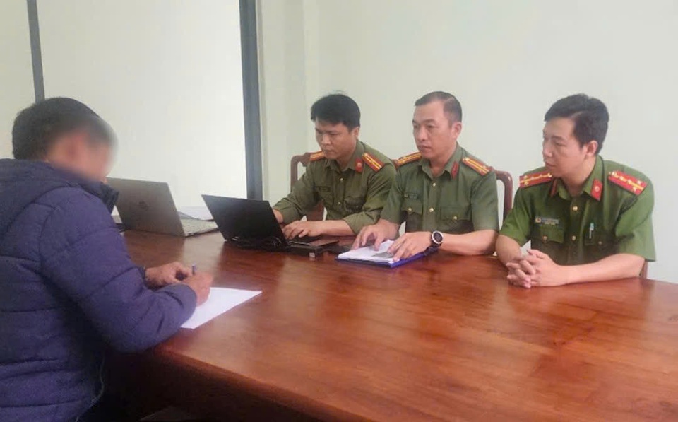 | Đối tượng T.H.E. tại cơ quan công an. Ảnh: C.A. |