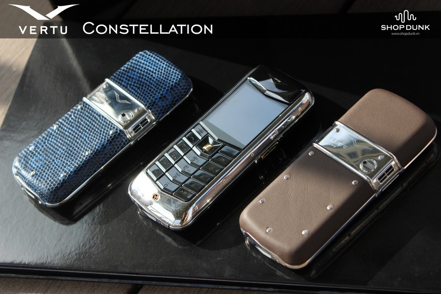 Vertu Consellation phím thép và phím gốm đính ruby, được bọc một lớp da thuộc chọn lọc như da rắn, da thằn lằn, da đà điểu, da cá sấu phía sau lưng, gồm nhiều màu sắc lựa chọn như đen, tím, xanh da trời, hồng sẫm, màu da thằn lằn, nâu sẫm. Sản phẩm có giá bán giao động khoảng 25-30 triệu động tại các showroom của ShopDunk.
