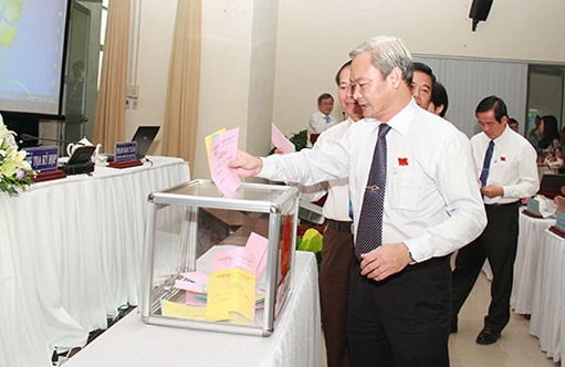 Các đại biểu bỏ phiếu bầu các chức danh Phó chủ tịch HĐND tỉnh. Ảnh Báo Đồng Nai. |