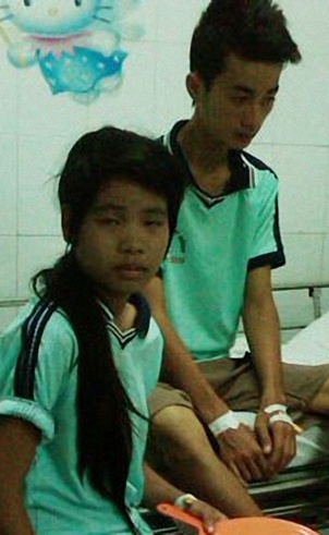| Hai em Huỳnh Ngọc Thạch và Nguyễn Hoàng Phúc điều trị tại bệnh viện. |