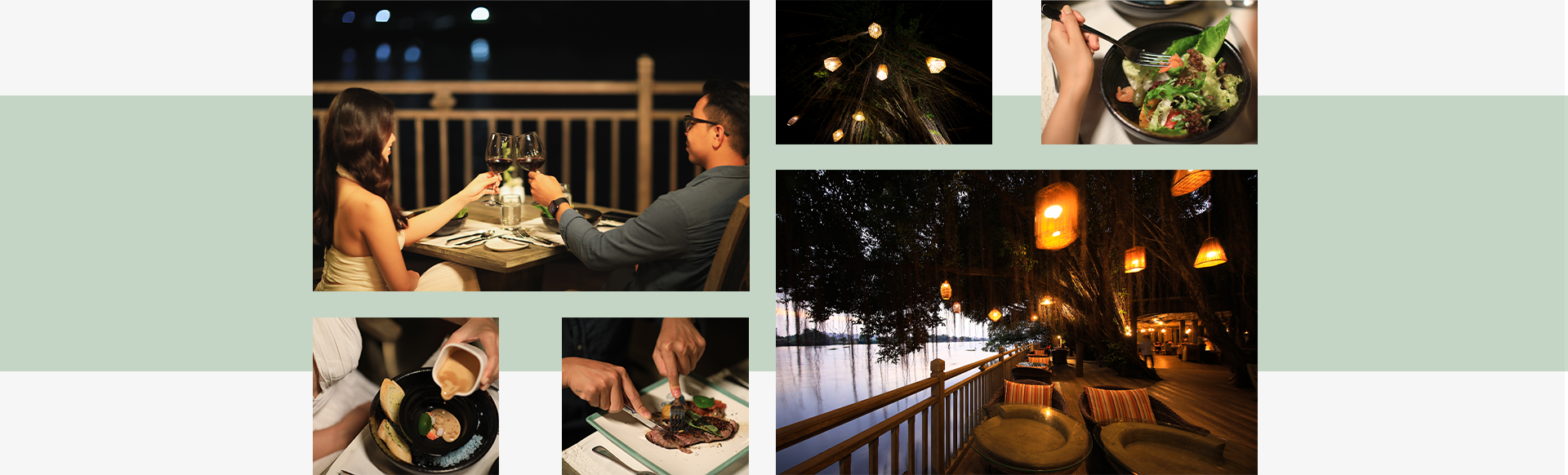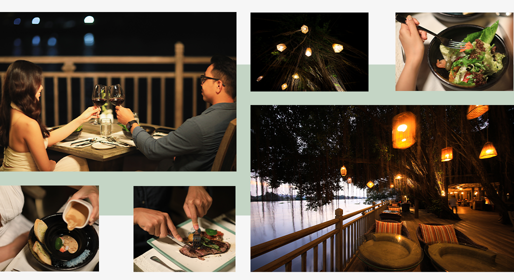Một điều tôi thích ở nhà hàng này là sự tinh tế, quan sát tỉ mỉ của nhân viên khi chăm sóc khách. Chiếc khăn lau của tôi rơi xuống đất chưa đầy 30 giây, các bạn phục vụ đã nhanh chóng đem ra cái mới. Bữa tối ven sông trôi qua nhẹ nhành, chỉ nghe tiếng côn trùng kêu, tiếng sóng vỗ nhẹ trên sông. Vì không gian yên tĩnh nên tôi và bạn trai chỉ trò chuyện khẽ.