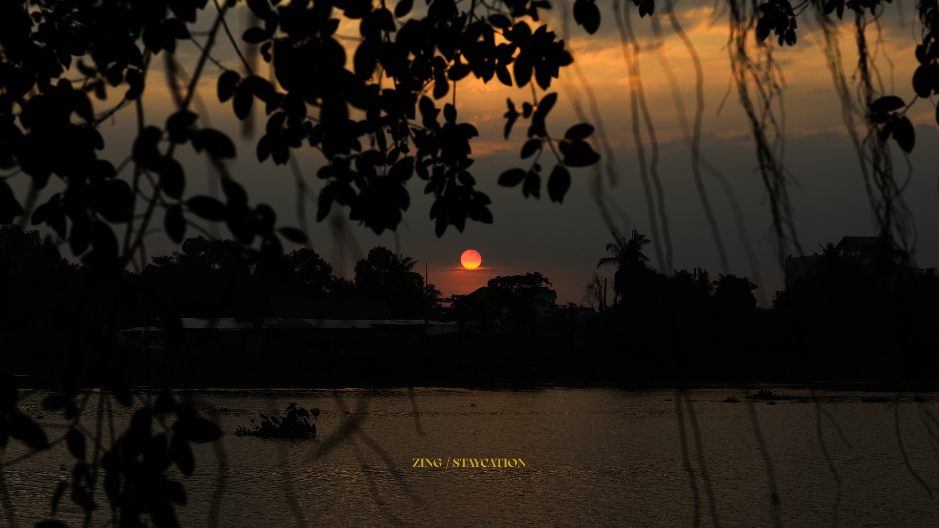 Xế chiều, tôi đi bộ ra khu vực sảnh trước để ngắm hoàng hôn trên sông. Cùng lúc đó, tôi tham gia lớp học làm cocktail đã đăng ký trước với resort. Tôi được tự tay pha chế như bartender, thưởng thức ly cocktail đậm phong cách nhiệt đới trong ánh nắng vàng như mật của buổi chiều tà.