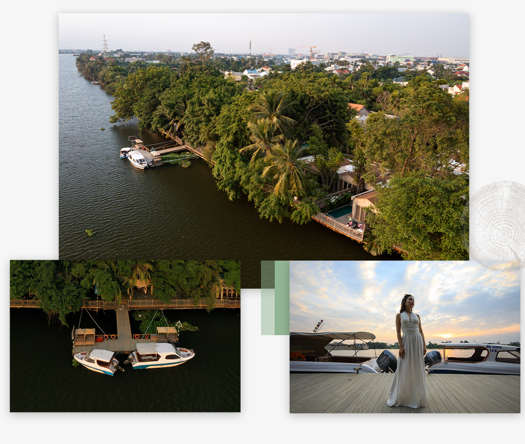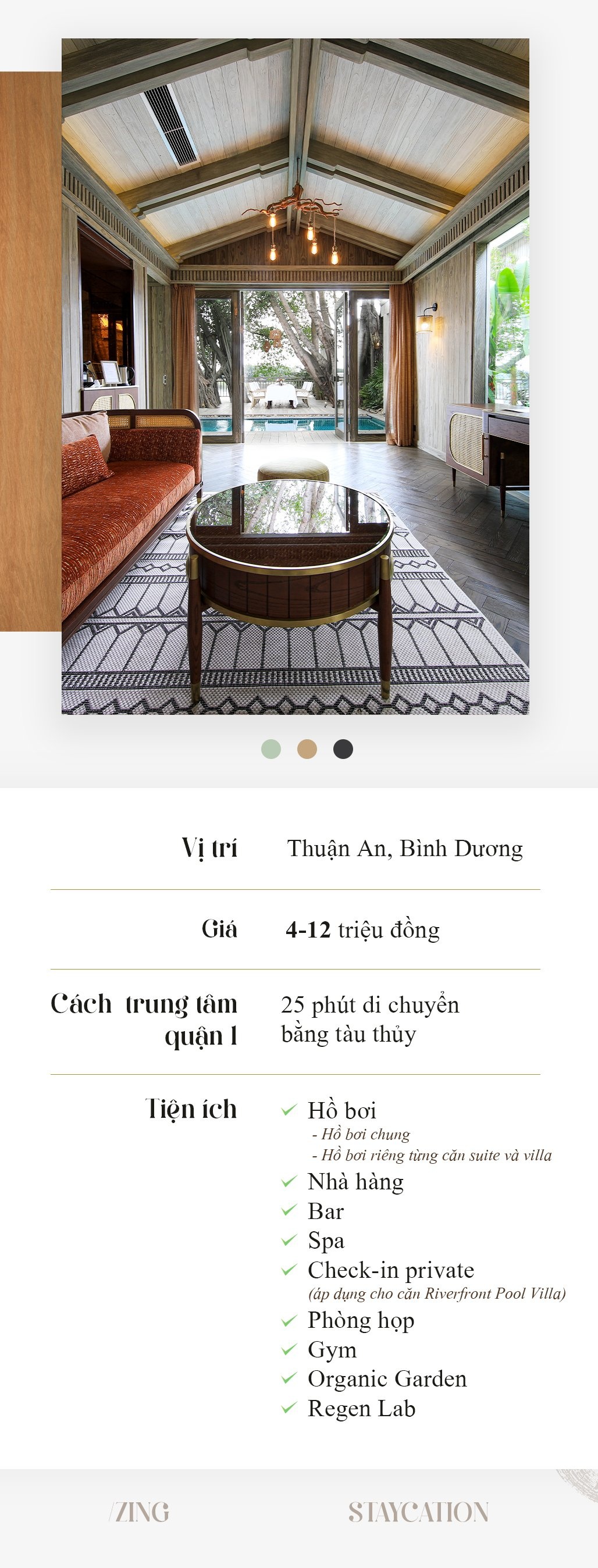 Nếu không nói địa điểm này chỉ cách TP.HCM chưa đến 15 km, tôi cứ nghĩ mình đang nghỉ dưỡng tại một nơi cách rất xa thành phố. Bên kia bờ sông không có các công trình cao tầng, bán kính trong một km chủ yếu là cây cối, sông nước, đem đến cảm giác yên tĩnh, mộc mạc.