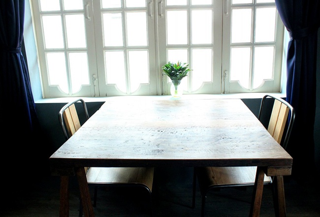 Bàn ghế ở "Biệt thự làm việc" được làm chủ yếu bằng gỗ và thiết kế theo phong cách riêng.