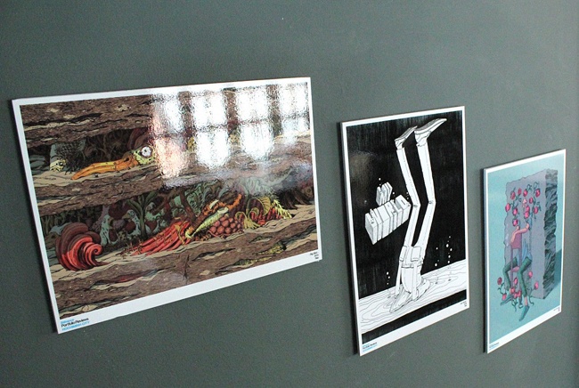 | Vách tường trang trí nhiều tranh ảnh, khơi gợi óc sáng tạo. |