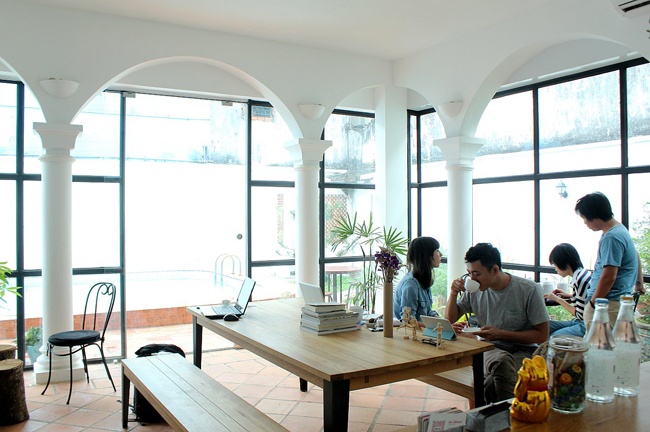 | Không gian làm việc yên tĩnh, có đầy đủ thiết bị như màn chiếu, bảng viết… rất thích hợp để làm văn phòng làm việc. Ngoài thời gian làm việc, mọi người có thể giao lưu học hỏi với nhau để giúp ích cho công việc của mình. Hơn 50% khách hàng ở đây là người nước ngoài. |