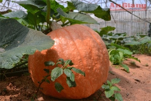 Bước vào những căn nhà kính trồng màu siêu sạch của ông Lê Hữu Phan, chúng tôi bắt gặp những trái bí ngô “khủng”, với màu đỏ gạch, trông lạ lẫm. Có thể nói, từ trước đến nay, chúng tôi chưa thấy quả bí nào to như những quả bí ngô nơi đây.![]() |