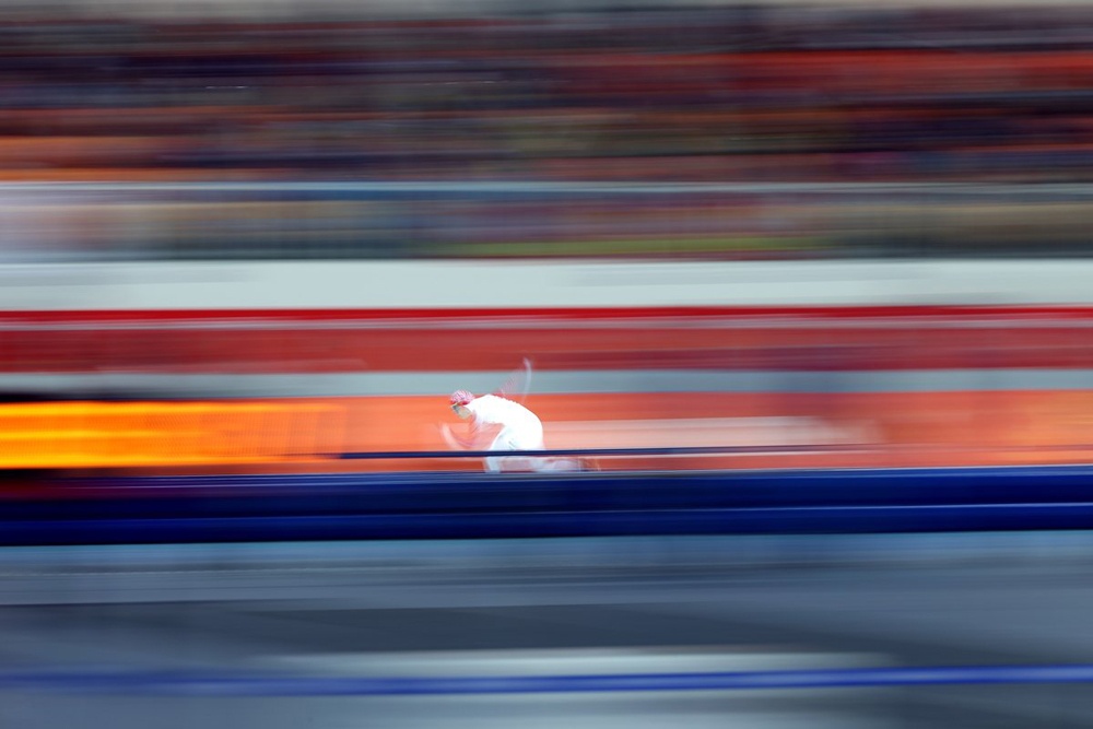 Angelina Golikova đến từ Nga tăng tốc trong chặng đua 500m nam. |