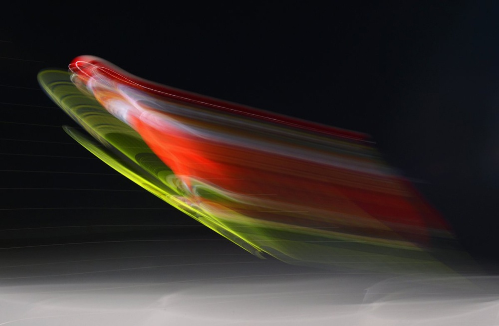 | Ảnh chụp ghi lại pha chuyển động tiếp đất của vận động viên Simon Ammann đến từ Thụy Sĩ. |
