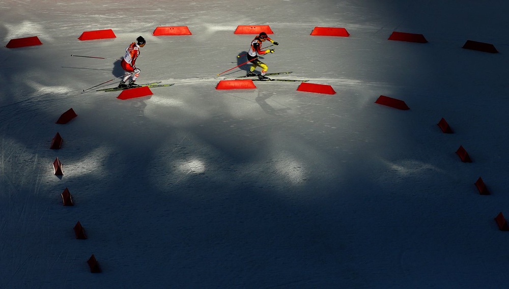 | Hình ảnh ảo diệu của vận động viên Gabriela Soukalova đến từ Cộng hòa Séc đang gấp rút hoàn thảnh đường đua 7,5 km. |