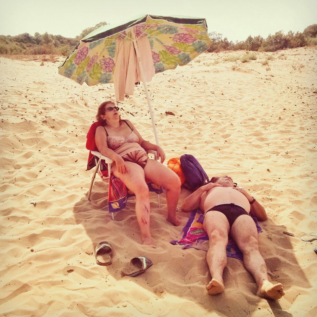 Cặp vợ chồng này đang nằm tắm nắng tại một bãi biển Italy.