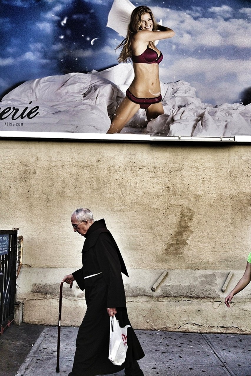 Một thầy tu đi ngang qua tấm biển quảng cáo khá sexy tại Bồ Đào Nha.