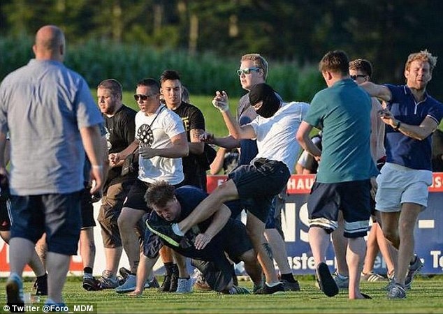 | Cảnh sát đã phải bắt giam 20 CĐV sau vụ đánh nhau trên sân |