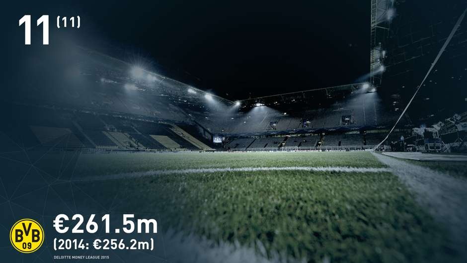 Thành tích không tốt tại Champions League khiến Juventus tụt một bậc cho dù tổng doanh thu có phần trội hơn. Tiền bản quyền truyền hình giảm 12,6 triệu euro, xuống còn 153,4 triệu. Trong khi thu nhập từ công việc kinh doanh trong các trận đấu đạt 41 triệu euro (chiếm 15% tổng doanh thu).