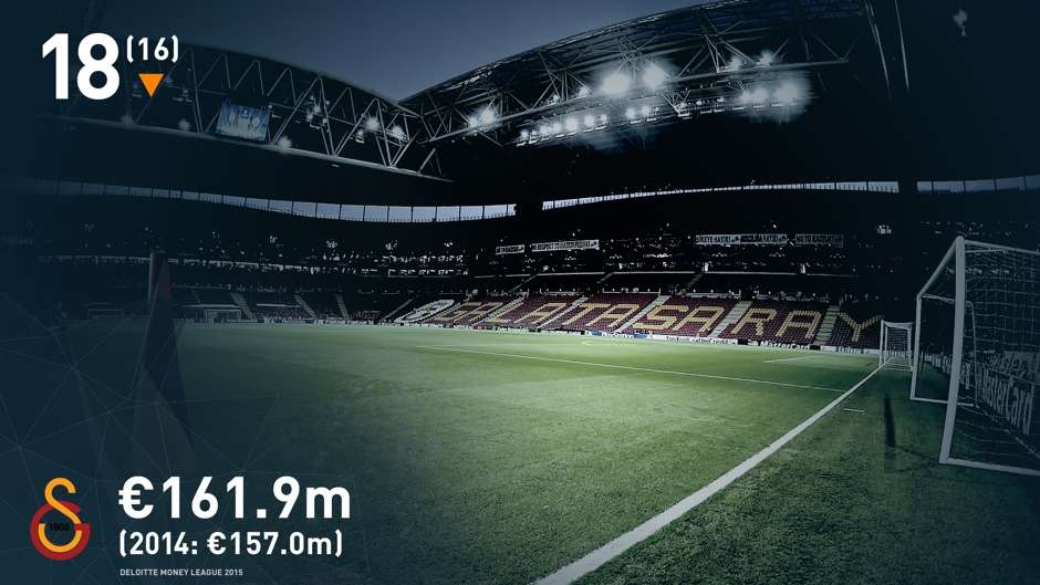 Galatasaray là đại diện duy nhất không thuộc Top 5 giải hàng đầu châu Âu có mặt trong danh sách. Các hợp đồng quảng cáo đem lại cho CLB Thổ Nhĩ Kỳ 67,1 triệu euro. Trong khi hoạt động kinh doanh ở các trận đấu cùng tiền bản quyền truyền hình đạt 95 triệu euro (chiếm 41% tổng doanh thu).