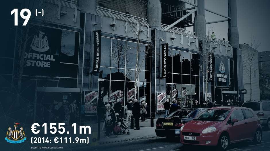 Bất chấp trải qua một mùa giải không tốt, Newcastle vẫn có sự tăng trưởng đột biến, tăng 35% so với mùa trước nữa. Hoạt động kinh doanh trong các trận đấu và doanh thu từ hợp đồng quảng cáo chỉ đạt 30 triệu euro, nhưng tiền bản quyền truyền hình lại giúp họ bỏ túi 93,5 triệu euro.