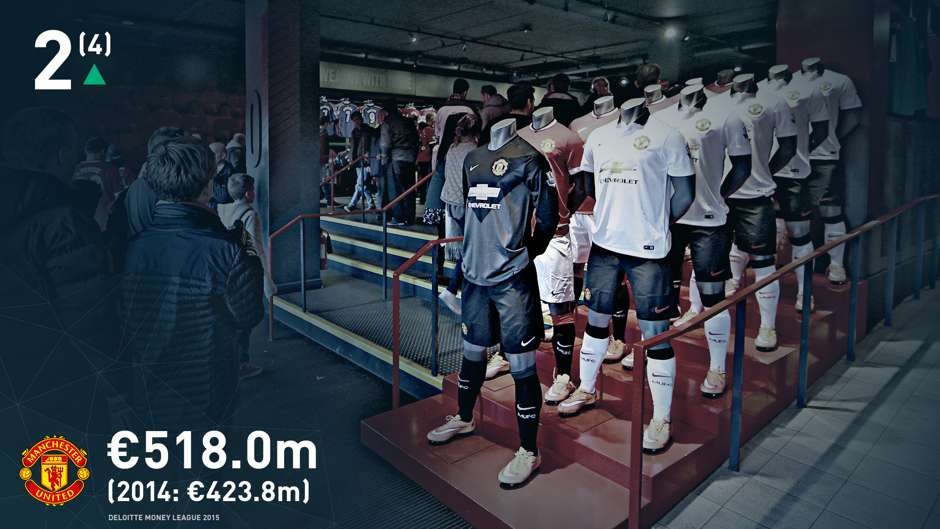 | Manchester United tạo ra bước nhảy phi thường so với cùng kỳ năm trước. Các bản hợp đồng thương mại đem lại cho Quỷ đỏ 226,4 triệu euro, tăng 24%. Mặc dù chỉ giành vị trí thứ 7 Premier League 2013/14, doanh thu bản quyền của M.U vẫn tăng 34%, đạt 162,3 triệu euro. |