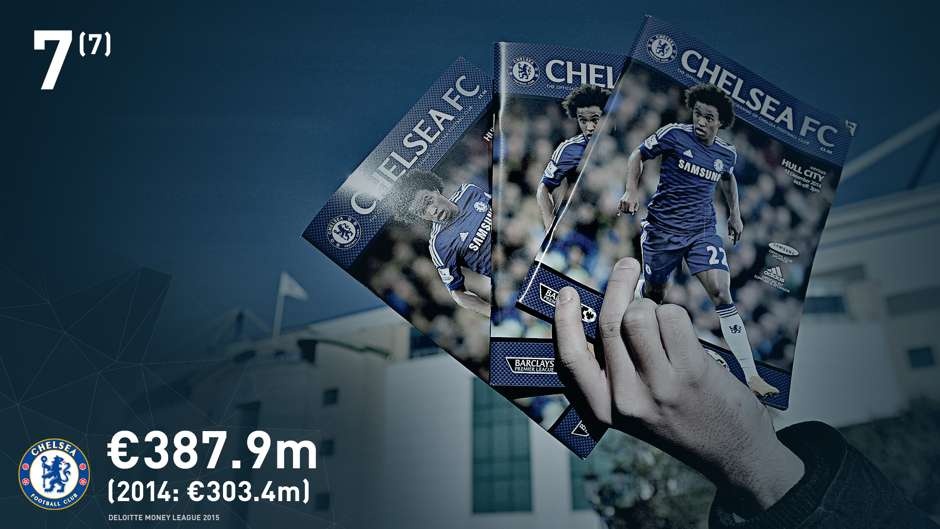 Tổng doanh thu của Chelsea mùa vừa qua tăng 25% so với mùa trước nữa. Trong số 387,9 triệu euro tổng doanh thu, có 167,3 triệu euro tiền bản quyền truyền hình, 135,7 triệu euro tiền kinh doanh (tăng 35%).