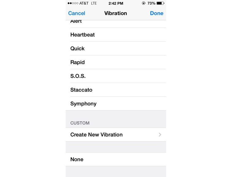 Bạn có thể cài đặt các kiểu rung khác nhau cho mỗi số liên lạc để nhận ra ai đang gọi đến dễ hơn bằng cách vào Contacts > Chọn số > Edit, cuộn xuống dưới rồi chọn Vibration > Create New Vibration. Trong cửa sổ mới hiện ra, chạm và giữ để tạo một mẫu rung. |