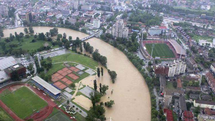 Cảnh lũ lụt tại thành phố Zenica thuộc Bosnia và Herzegovina vào ngày 15/5. Giới chức Bosnia thông báo ít nhất 12 người chết do nước lũ nhấn chìm vài chục thành phố, thị trấn của nước này trong 3 ngày qua. Ảnh: Reuters