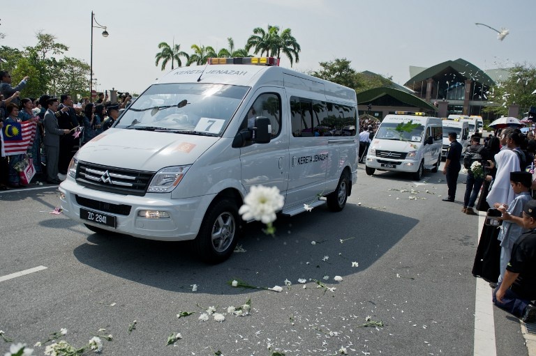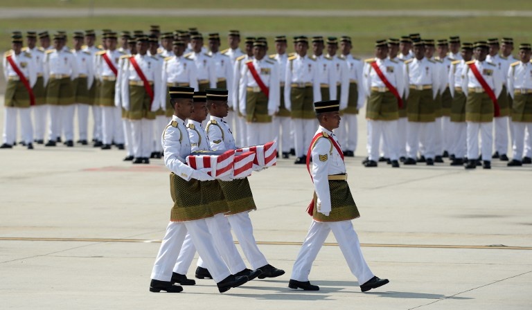 Binh sĩ Malaysia làm lễ đón thi thể những người xấu số. Ảnh: AP