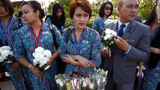 Nhân viên hãng hàng không Malaysia Airlines tập trung đón thi thể hành khách và đồng nghiệp, những người thiệt mạng oan uổng trên chuyến bay số hiệu MH17. Ảnh: AP
