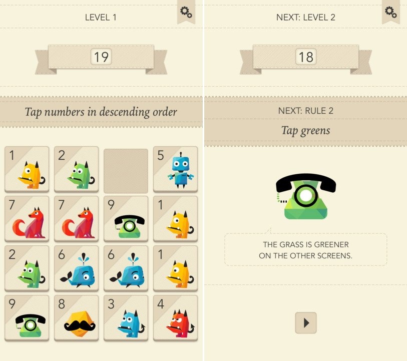 Rules là một game giải đố có nhịp độ nhanh, yêu cầu bạn phải để ý vào mọi chi tiết. Những thách thức trong game sẽ bắt đầu xuất hiện khi người chơi buộc phải nhớ và làm theo mỗi quy tắc ở level trước đó. Ở mỗi cấp độ sẽ có một quy tắc mới được thêm vào.
