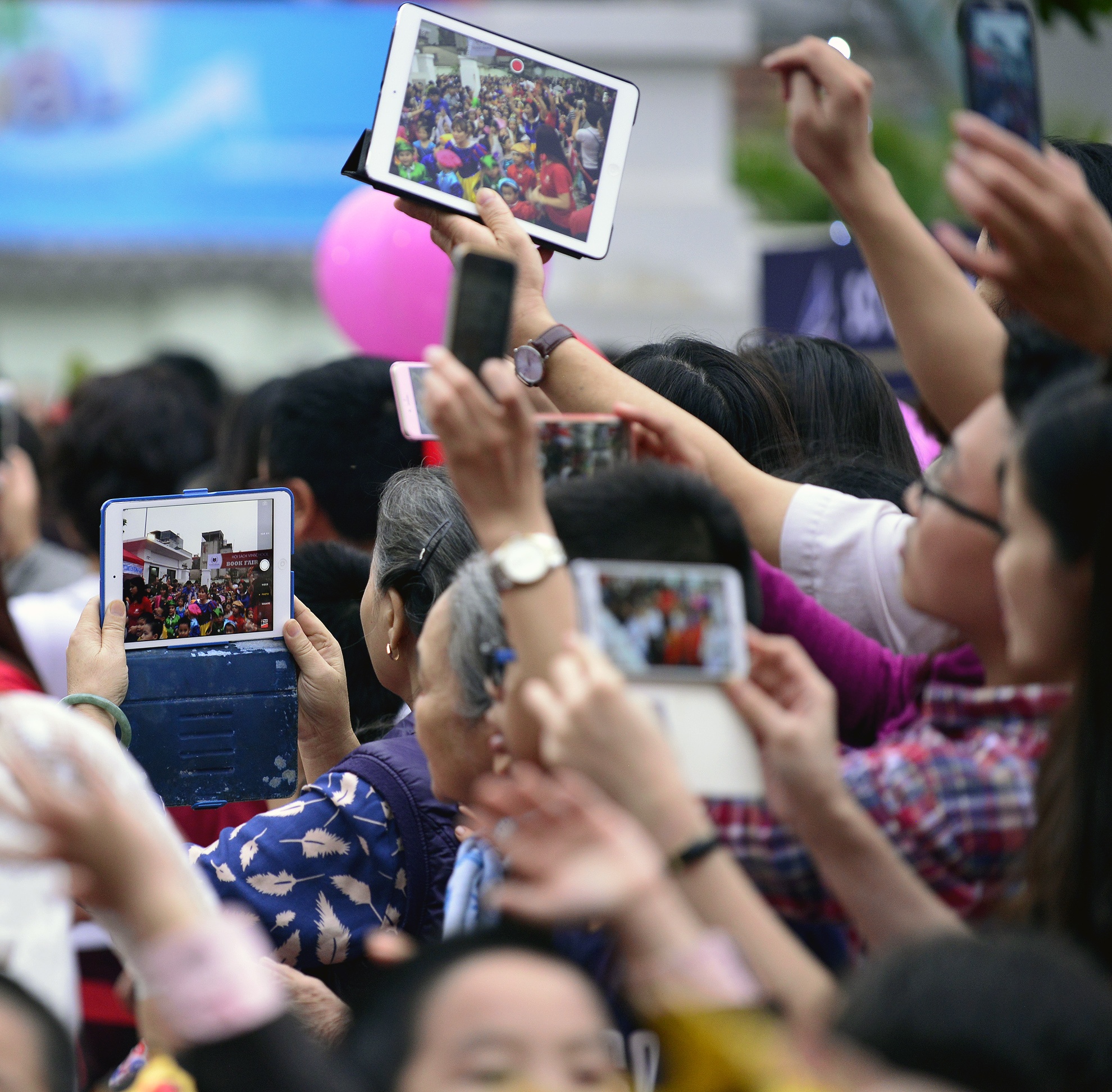 | Nhiều phụ huynh dùng điện thoại, ipad ghi lại những hình ảnh đẹp của con em mình. |