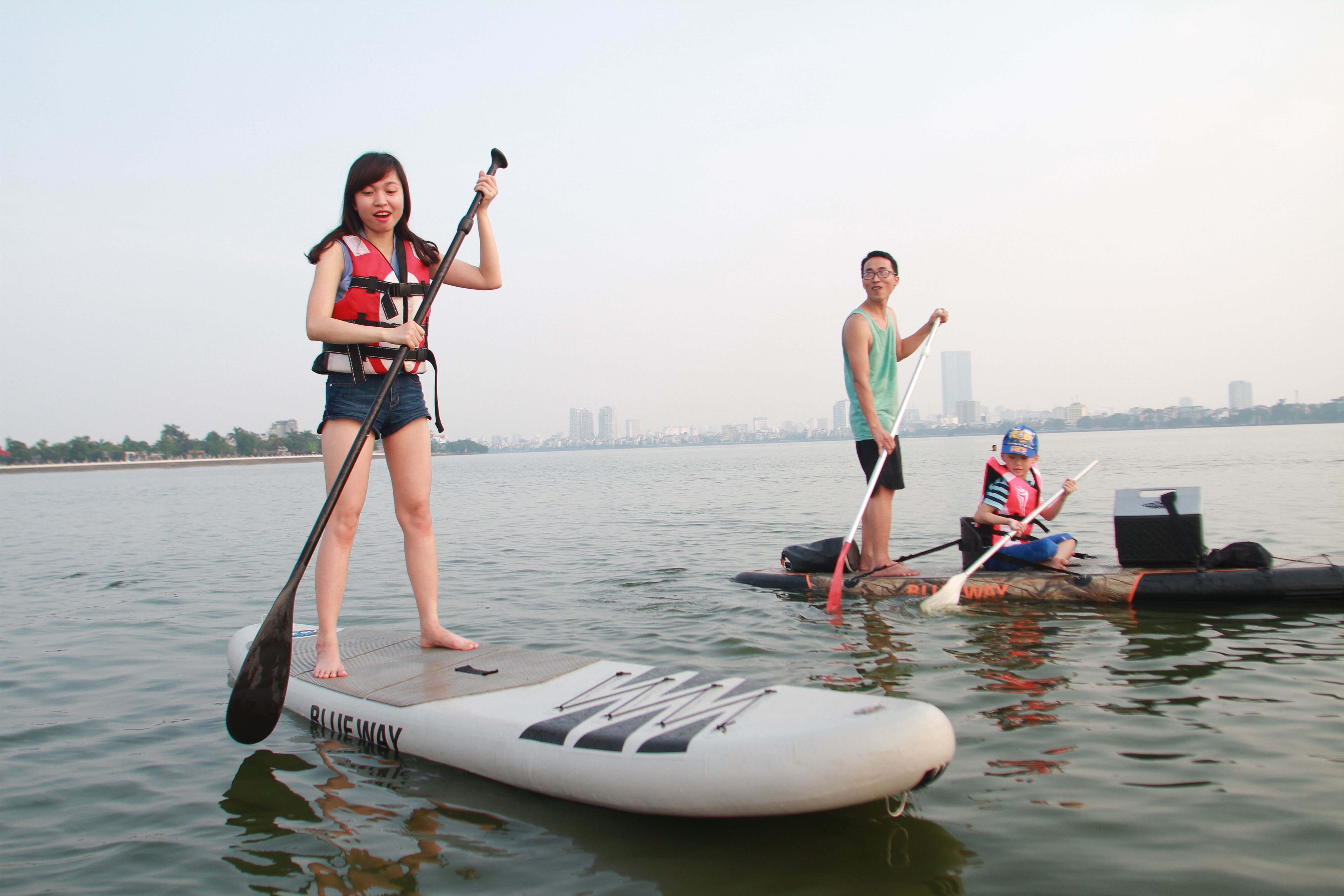 "Thoạt nhìn có vẻ khá khó chơi nhưng chỉ mất 10-15 phút làm quen thì thấy khá đơn giản. Sau khi di chuyển được tấm ván trên nước, mình được hướng dẫn các kỹ thuật chèo, lái, đua... phức tạp hơn. Khi có thể đứng để đẩy mái chèo, lướt trên mặt nước mình có cảm giác như vừa chinh phục một đỉnh núi cao", Thương nói.