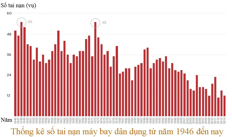 | Bảng thống kê số vụ tai nạn máy bay từ năm 1946 đến nay. Ảnh: CNN |