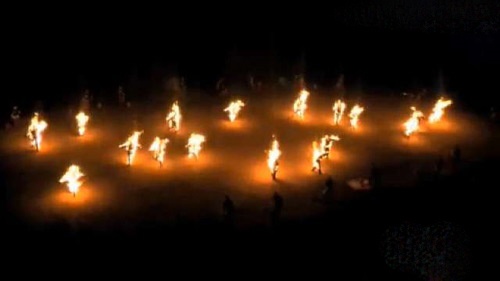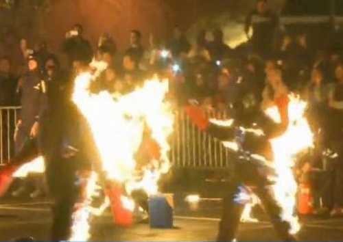 Những cây đuốc sống được cung cấp các trang phục chống cháy trước khi tự thiêu. Sau đó, một nhóm tình nguyện viên đổ dầu lên người họ và phóng hỏa. Sau 32 giây, nhóm tình nguyện viên dùng vòi xịt dập lửa.