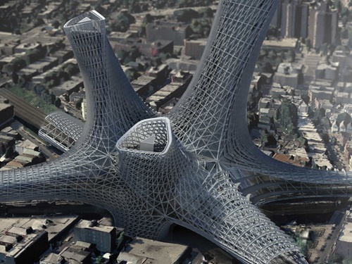 "Urban Alloy Tower" được tạo ra với mục đích tạo thêm nhiều căn nhà nằm ngay trên giao điểm của các đường tàu tại những thành phố như New York. Tác giả: Matt Bowles, Chad Kellog (Mỹ) |