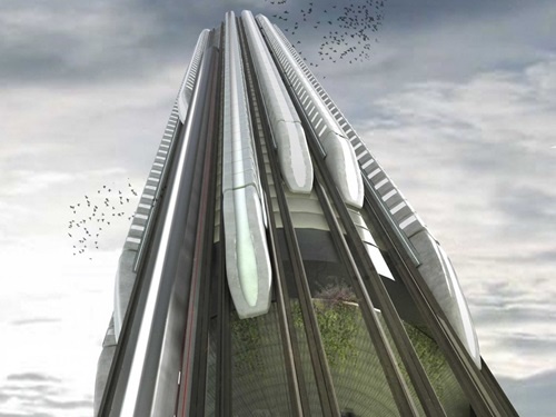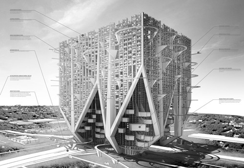 Giải nhì là dự án "Car and Shell Skyscraper", được ví như một thành phố trên bầu trời. Tòa nhà có nhà ở, khu giải trí và thương mại. Tác giả: Mark Talbot, Daniel Markiewicz (Mỹ) |
