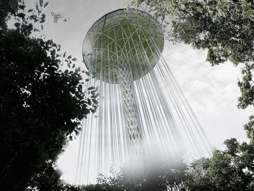 Tháp nước khổng lồ này sẽ giúp ngăn chặn các đám cháy bằng cách lấy nước vào mùa mưa và phun xuống đất vào mùa khô cho rừng Amazon. Tác giả: Jie Huang, Jin Wei, Qiaowan Tang, Yiwei Yu, Zhe Hao (Trung Quốc) |