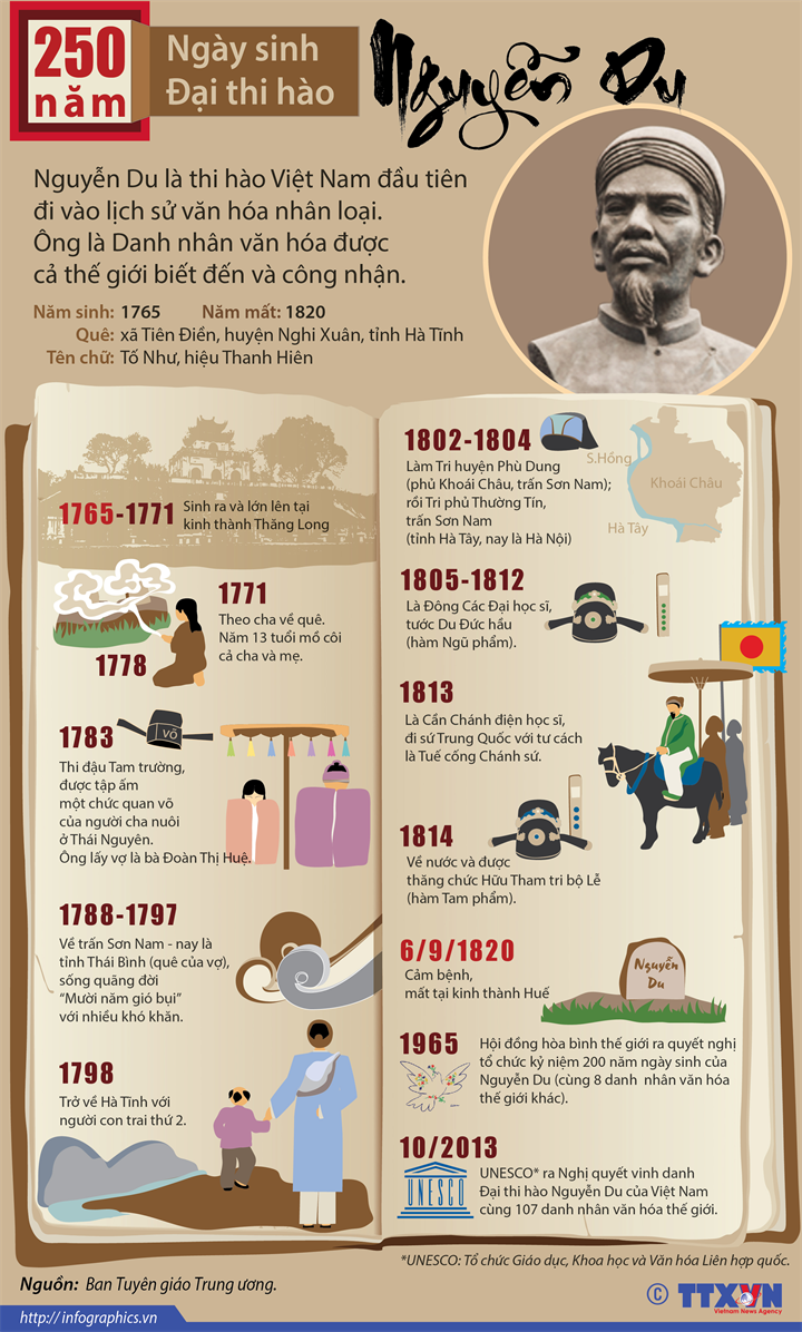 Đó là những bài ca đối đáp đậm chất phiêu du của một thời tuổi trẻ, như: Thác lời trai phường nón; Văn tế sống hai cô gái Trường Lưu; ba tập thơ chữ Hán là: Thanh Hiên thi tập; Nam trung tạp ngâm, Bắc hành tạp lục gồm tổng cộng 250 bài; Văn tế thập loại chúng sinh… Đặc biệt là Truyện Kiều nổi tiếng khắp thế giới.