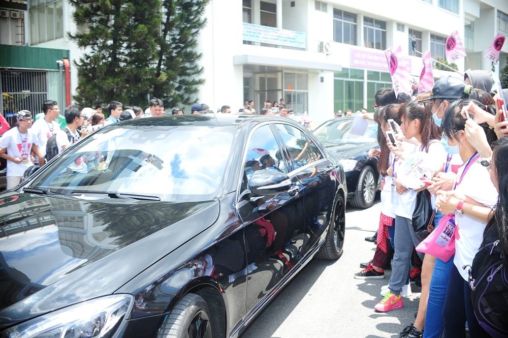 | Xuất hiện trong tích tắc, ba cô gái nhanh chóng lên xe và di chuyển về khách sạn. Họ sẽ có khoảng thời gian nghỉ ngơi trước khi tham gia buổi họp báo vào chiều 8/8. |