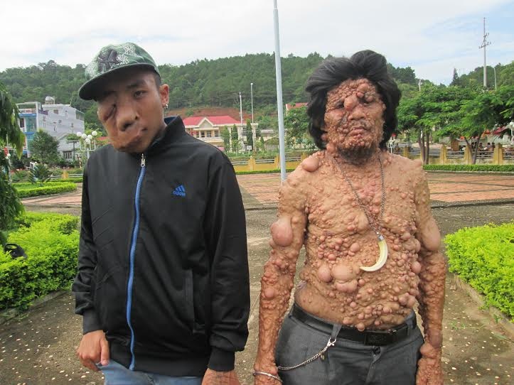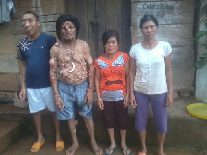 “Những khối u này lớn rất nhanh và mọc chi chít khắp cơ thể. Lúc nhỏ, cháu vô tư hồn nhiên bao nhiêu thì bây giờ lúc nào cũng buồn rười rượi. Có lần đi chơi bị té, khối u thịt ở vai bị vỡ, cháu ngất lịm tại chỗ. Cháu được đưa đi viện để cắt bỏ khối u thì mới tỉnh lại. Nhưng sau đó khối u ấy tiếp tục mọc lại, giờ to gần gấp đôi trước”, ông Tê buồn rầu kể.
