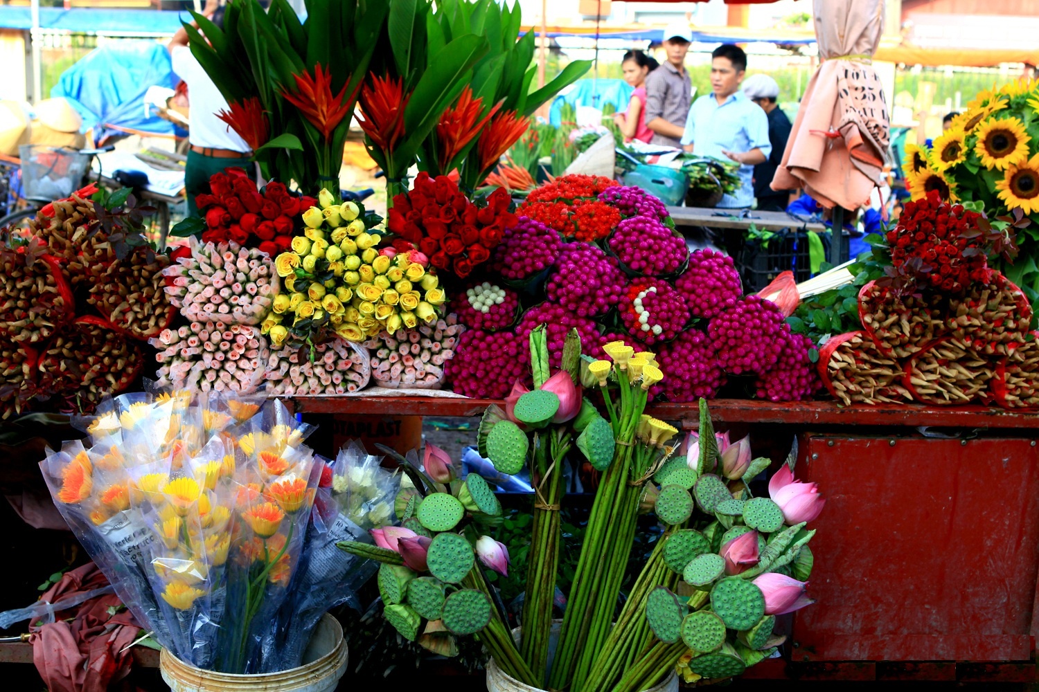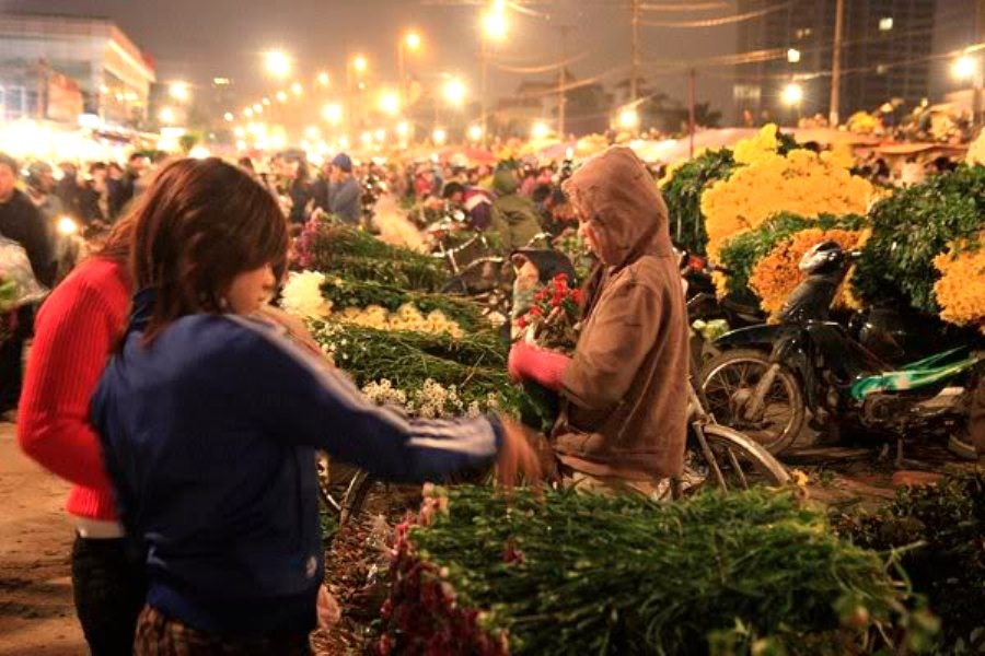 Chợ họp mỗi ngày từ 2 đến 4h sáng cho khách mua buôn, và từ khoảng 5h đến gần trưa cho khách lẻ. Khách tới chợ đông quanh năm, không chỉ là dân buôn bán mà còn có người dân thủ đô và du khách nước ngoài tới thưởng hoa, cảm nhận không khí mua bán, sinh hoạt giữa rừng hoa với đủ loại hương thơm, màu sắc quyến rũ. Khi tiết trời chuyển từ thu sang đông cũng là lúc hoa vào độ đẹp nhất, lại là dịp có nhiều ngày lễ lớn như 20/10, 20/11 nên lượng khách tới chợ đông hơn hẳn.