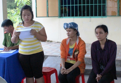 Chiều 16/8, Phòng Cảnh sát quản lý hành chính về trật tự xã hội (PC 64 - công an tỉnh Bình Dương) phối hợp với các ban ngành ở ấp An Sơn (xã An Điền) đưa ra giáo dục trước dân và công bố quyết định xử lý vi phạm hành chính đối với Võ Thị Tơ (31 tuổi), Nguyễn Thị Thu Phấn (13 tuổi), Hồ Ngọc Dung (15 tuổi, cùng ngụ xã An Điền).