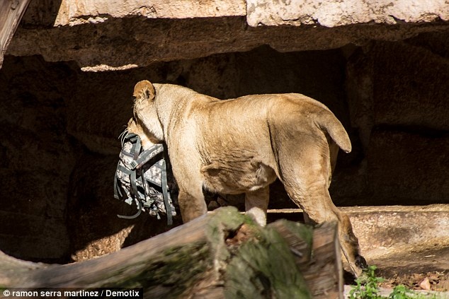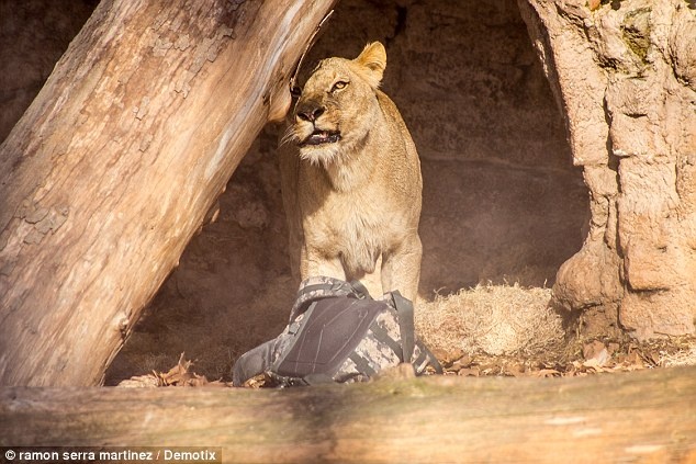 Một người đàn ông Tây Ban Nha mặc bộ quân phục, đeo ba lô, trèo qua lan can rồi nhảy vào chuồng sư tử tại vườn thú Barcelona, Tây Ban Nha hôm 8/12. Ngay lập tức một con sư tử đực lao tới rồi ngồi đè lên người đàn ông.