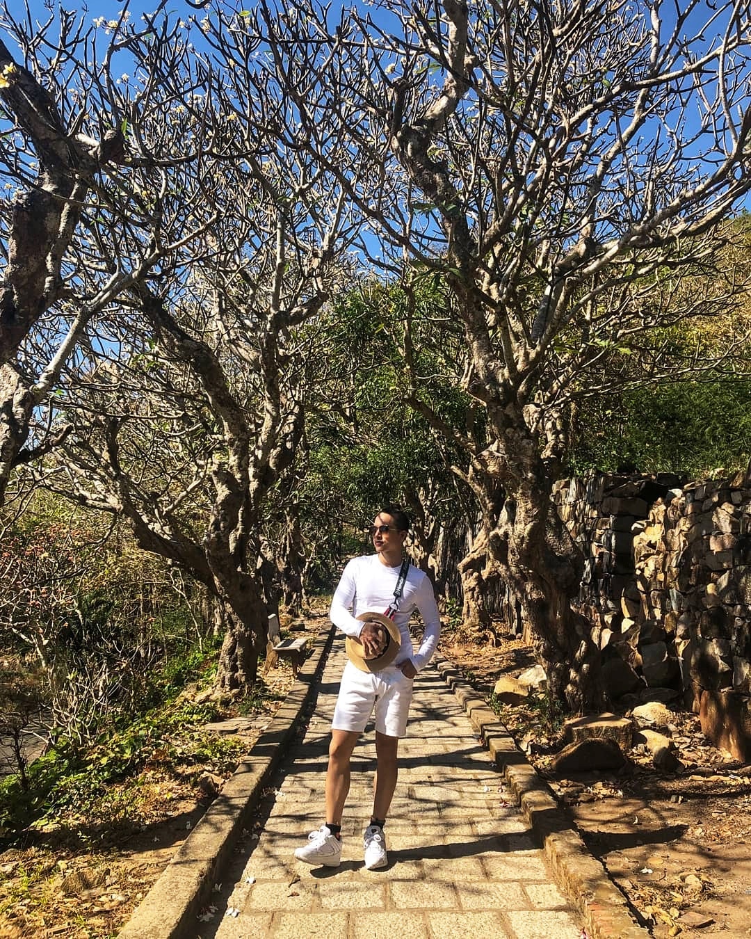 Tại đảo Kê Gà có hàng sứ cổ thụ cả trăm năm tuổi, từ thời Pháp đến nay, được trồng hai bên đường dẫn lên ngọn hải đăng. Những gốc sứ xù xì, uốn lượn, tỏa bóng xanh ngắt tạo nên background hấp dẫn du khách check-in khi đến đây. Ảnh: Sana_ngochong. |