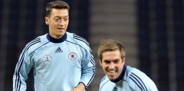 | Hai cầu thủ ở ĐT Đức Oezil và Lahm sẽ đối đầu với nhau trong trận Arsenal gặp Bayern. Ảnh: Getty Images. |