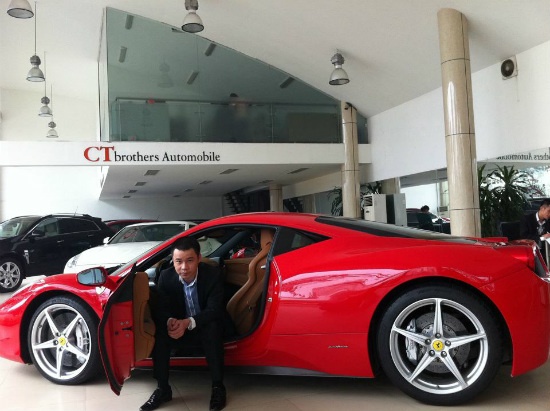 | Phan Hùng Cường bên siêu xe Ferrari 458 Italia. |