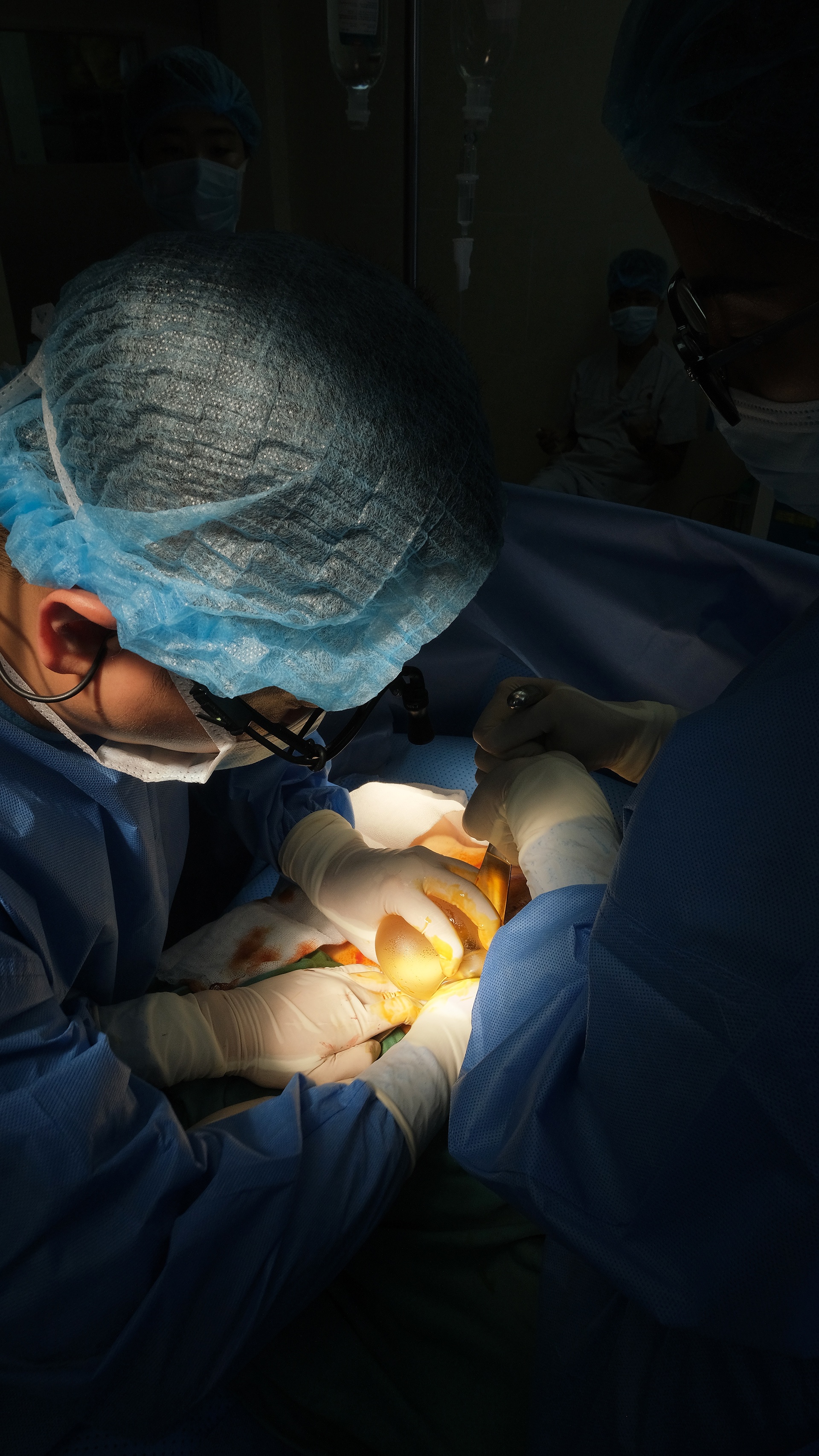| Sau khi hoàn thành, tôi cùng sự trợ giúp của ê-kíp khâu và băng bó lại vết mổ với nỗ lực hạn chế kích thước sẹo. |