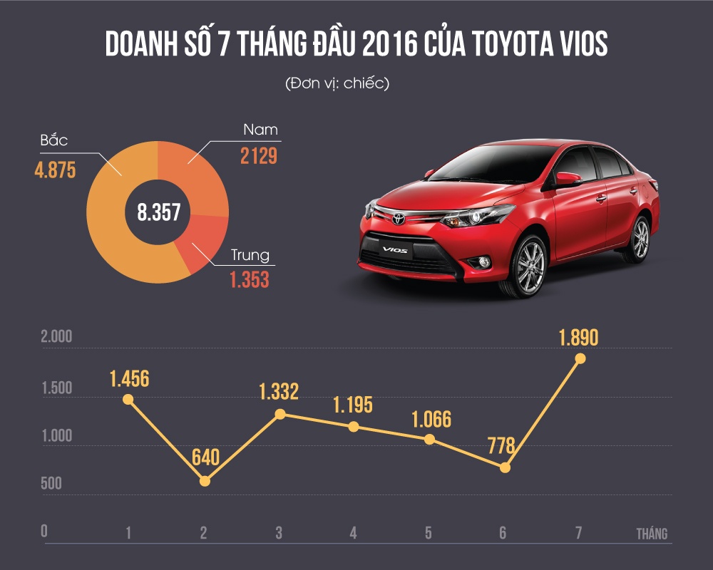 | Toyota Vios lập kỷ lục với gần 2.000 xe bán ra trong tháng 7. Đồ họa: Phượng Nguyễn. |