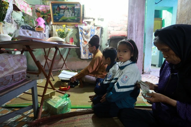 Bà Phạm Thị Điểm (mẹ của anh Chí) trước nỗi đau quá lớn, sau khi nghe tin bà hốt hoảng không thốt nên lời. Hai cháu nhỏ Kháng và Ngọc từ nay mất cha, mất mẹ.