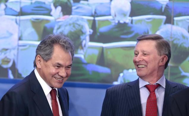 | Bộ trưởng Quốc phòng Nga Sergei Shoigu (trái) và Chánh văn phòng tổng thống Nga Sergei Ivanov là hai trong 3 nhân vật khởi xướng kế hoạch không kích của Nga tại Syria. Ảnh: Thehindu.com |