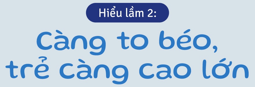 Trái với quan điểm trên, các chuyên gia dinh dưỡng không đánh giá sự tăng trưởng, khỏe mạnh và thông minh của trẻ chỉ qua cân nặng. Bởi quá trình phát triển lành mạnh của trẻ nhỏ phụ thuộc vào nhiều yếu tố khác ngoài cân nặng như chiều cao, chế độ ăn, hoạt động thể chất, phản xạ giao tiếp,… Các chuyên gia cũng khuyến cáo việc tăng cân nhanh và liên tục có thể khiến trẻ đối mặt nguy cơ béo phì - “cửa ngõ” của nhiều căn bệnh đáng lo ngại.