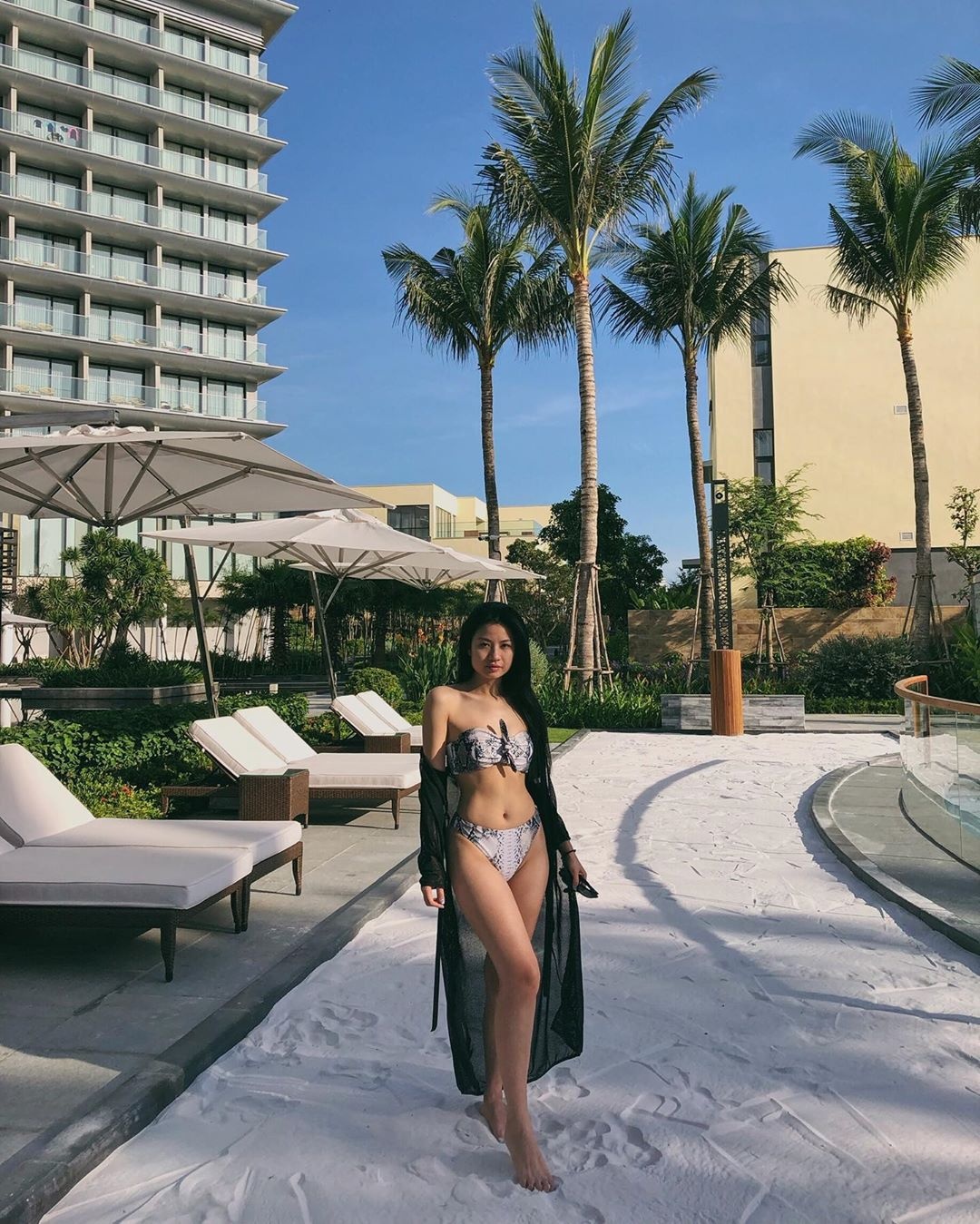 Nổi bật nhất khu nghỉ dưỡng là hệ thống hồ bơi ngoài trời trải dài ra biển. Đây là một trong những góc sống ảo được du khách yêu thích. Du khách gọi các cabana đặt bên hồ bơi là “ốc đảo riêng tư” dành cho cặp đôi và gia đình. Địa chỉ: Lạc Long Quân, Điện Bàn. Mức giá từ 3,5 triệu/2 người. Ảnh: Bellelebabe. |